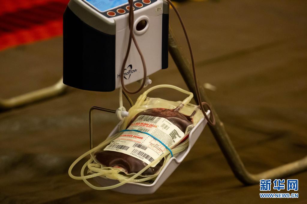 這是6月14日在美國紐約州長島地區(qū)的尤寧代爾拍攝的獻血志愿者在美國紐約血液中心舉行的獻血活動上捐獻的血液。