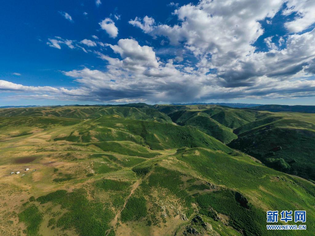 新疆裕民縣巴爾魯克山區(qū)夏牧場景觀(6月16日攝,無人機(jī)照片)。