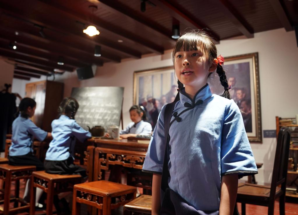 5月31日,全新布展提升后的中共四大紀(jì)念館重新開館,首批“小紅花”小小講解員進(jìn)行了專場情景劇的首演。新華社記者 劉穎 攝