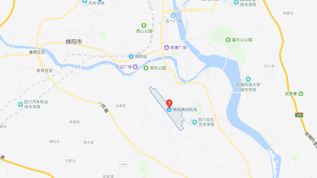 綿陽南郊機場于2001年正式通航,是全國唯一集民航運輸、飛行訓練、軍事飛行為一體的三方合用機場。