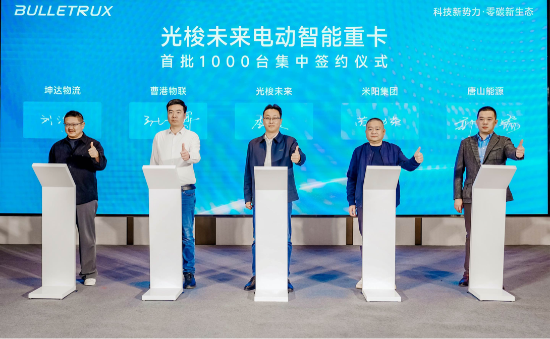 现场,光梭未来电动智能重卡首批1000台集中签约暨首台1.0纯电重卡交付仪式同步举行,标志着这家新能源重卡行业的“新势力”,正加速推动行业共赴绿色、智能、全球化的未来。