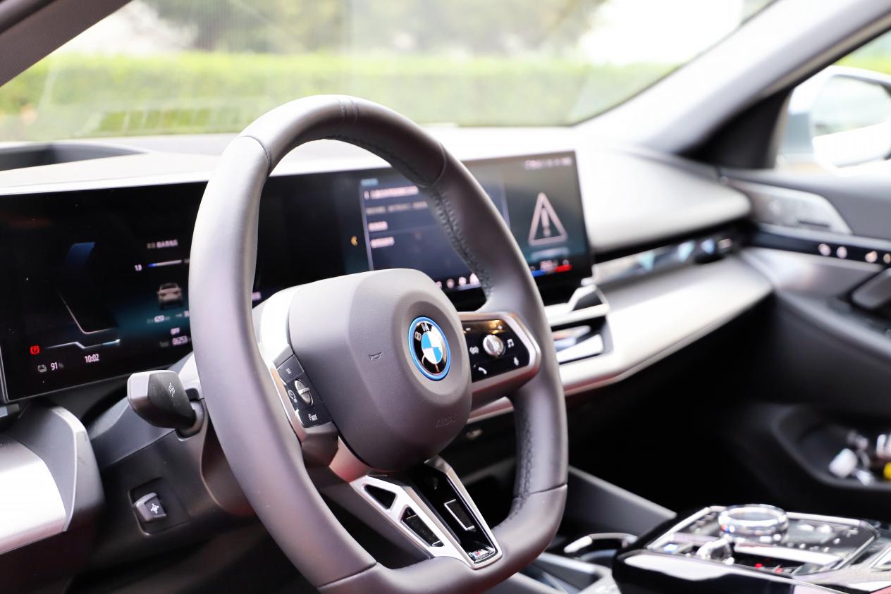 作为M运动套装车型,驾趣是刻在基因里的标签。这台车搭载后置单电机,最大功率240kW(326马力),峰值扭矩410N·m,0-100km/h加速仅需6.7秒。实际驾驶中,电机的动力输出如丝般顺滑却不失爆发力——起步时轻踩电门,动力线性释放;中后段加速时,电机的高扭矩特性让超车变得从容,即便是高速巡航,仍能感受到动力的持续储备。