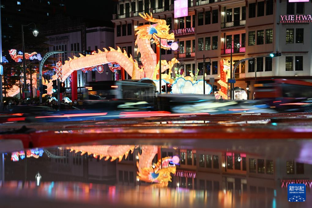 这是1月19日在新加坡牛车水拍摄的农历新年灯饰。新华社发(邓智炜 摄)