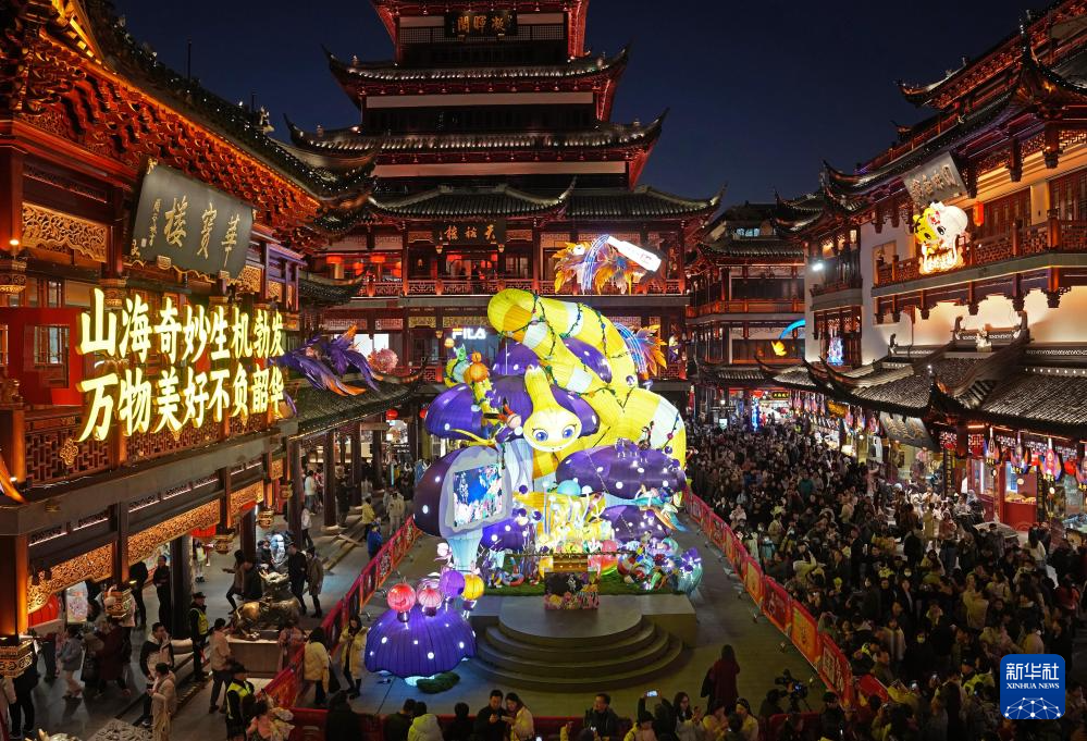 当日,2025上海豫园民俗艺术灯会正式亮灯。今年灯会的主题延续“山海奇豫记”的故事,开启丛林篇的讲述。作为国家级非物质文化遗产代表性项目,走过30年的豫园灯会已成为上海标志性新春文化活动和城市文化名片。