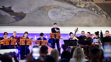 11月22日,天津传媒学院学生在青春盛典上表演戏剧《再会,在金刺猬》。