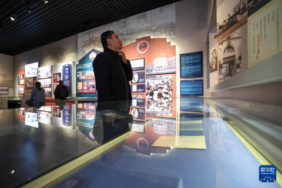 1月13日,市民在天津博物馆参观“实业兴邦——近代天津工商业展”,了解天津劝业场相关历史背景。