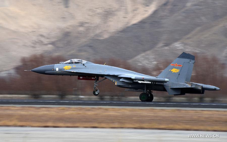 An aircraft of the PLA Air Force in the Western Theater Command takes off during a training on Jan. 3, 2018. (Xinhua photo)