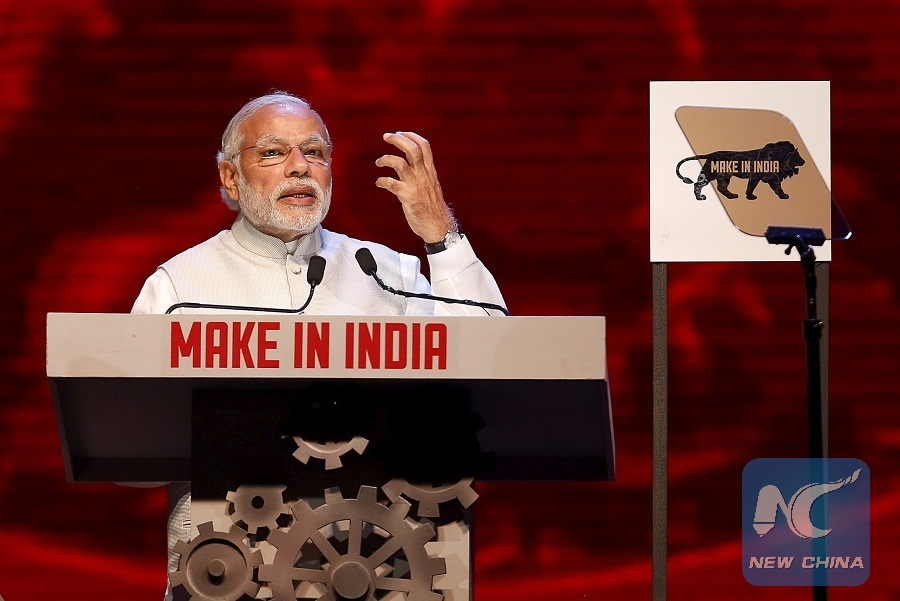 India's Prime Minister Narendra Modi speaks during the inauguration ceremony of the 'Make In India' week in Mumbai, India. (Reuters Photo)