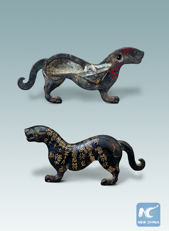 This tiger tally has an inscription of 40 characters about a general who was garrisoned in a place called Du. In ancient China, the tally was a token used by the king to control his army.