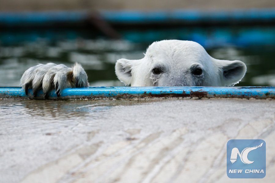 A Polar bear swims in a pool at the center of reproduction of rare species of animals at the Moscow Zoo in the village of Sychevo, Moscow Region on July 24, 2017. (AFP PHOTO/Maxim ZMEYEV)