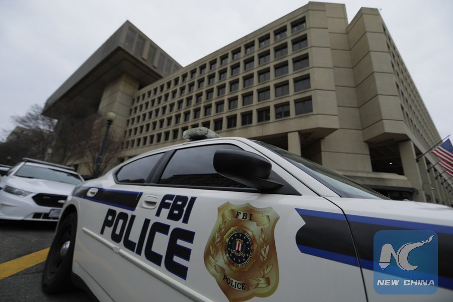 FBI Police vehicles sit parked outside of the J. Edgar Hoover Federal Bureau of Investigation Building in Washington, U.S., Feb. 1, 2018. (Xinhua/REUTERS)