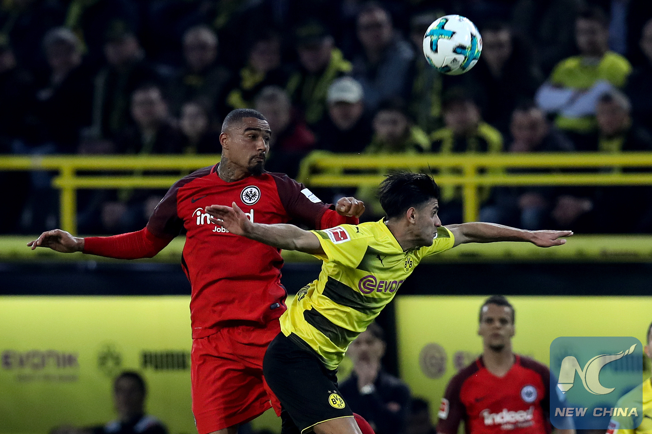 BERLIN, March 11 (Xinhua) -- Borussia Dortmund overpowered resilient Frankfurt 3-2 after substitute Michy Batsuhayi scored two late goals to secure all three points on home soil at the 26th round in Bundesliga on Sunday.