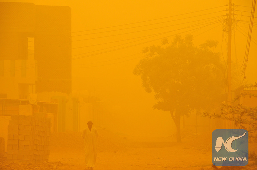 A huge dust storm engulfed Sudan's capital Khartoum on March 29, 2018, forcing the suspension of air flights to Khartoum airport. (Xinhua/Mohamed Khidir)