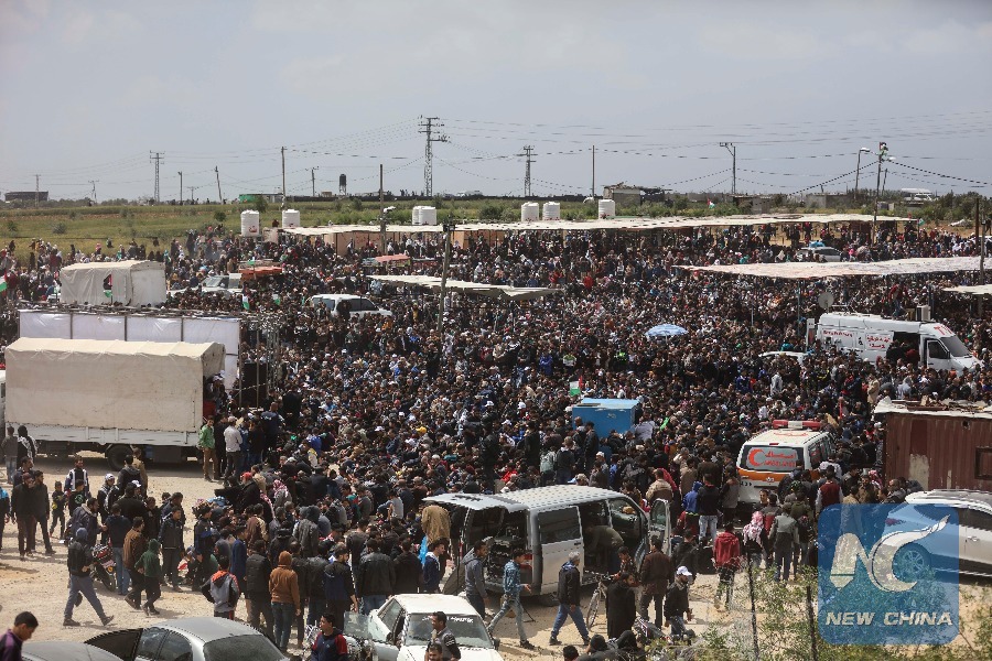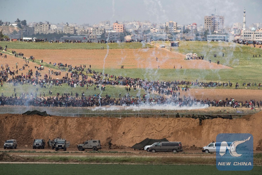 BEIJING, March 31 (Xinhua) -- Gaza witnessed its bloodiest day since the 2014 Israel-Palestine conflict with at least 17 Palestinians killed and over 1,000 wounded as a march by thousands of Palestinians to Gaza's border with Israel turned violent Friday.
