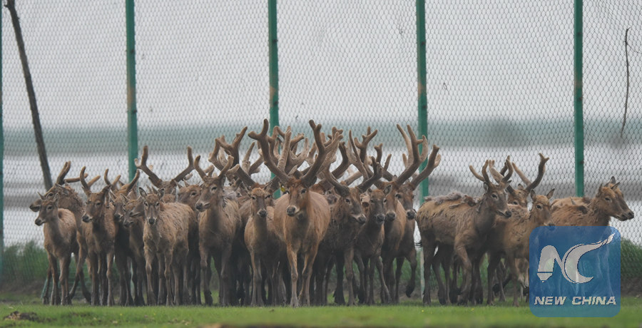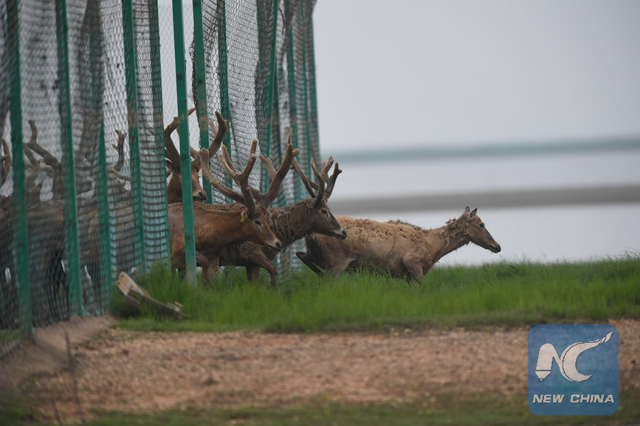 The center placed 10 milu deer in the Poyang Lake National Wetland Park in 2013 to conduct a five-year adaptability test to see if the deer could live and reproduce there.