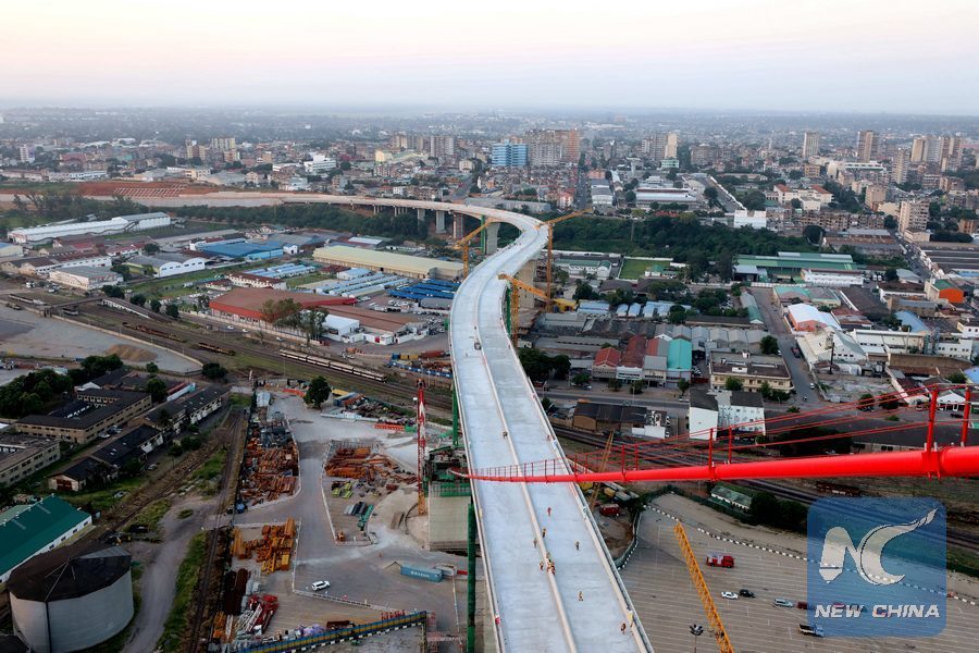 Photo taken on May 10, 2018 shows the Chinese-built Maputo Bridge and link roads. (Xinhua/Wang Teng)