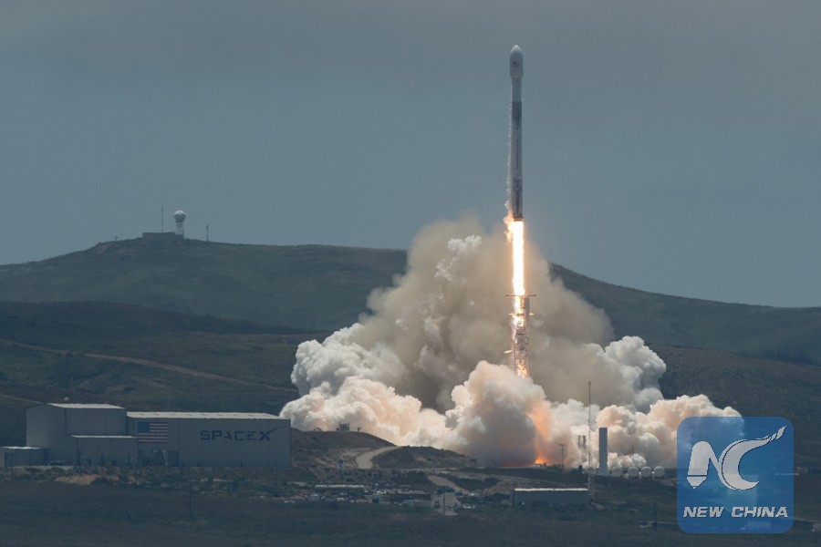 A SpaceX Falcon 9 rocket lifts off carrying the NASA/German Research Centre for Geosciences GRACE Follow-On spacecraft from Space Launch Complex 4E at Vandenberg Air Force Base, California, U.S., May 22, 2018. (Xinhua/REUTERS)