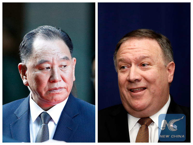 Pompeo made the remarks at a press briefing in New York after wrapping up his two-day meeting with a visiting DPRK delegation, led by Kim Yong Chol, vice chairman of the DPRK's ruling Workers' Party of Korea Central Committee.