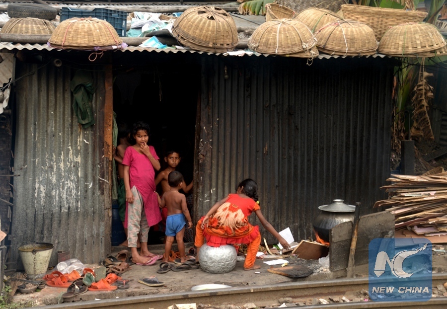 Photo taken on Nov. 18, 2017 shows life in slum houses near rail lines in Dhaka, capital of Bangladesh. There are many slums and squatter settlements in Dhaka that lack of basic services. (Xinhua/Salim Reza)