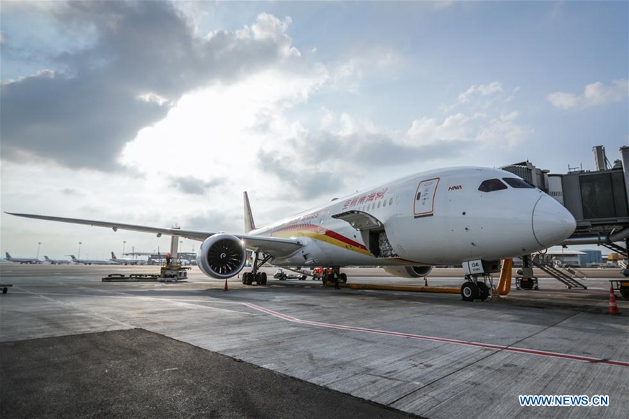 Ground crew serve an aircraft from Guangzhou at Ben-Gurion International Airport near Tel Aviv, Israel, Aug. 2, 2018. A new air route was launched between Guangzhou City in south China's Guangdong Province and Tel Aviv, Israel's second-largest city. (Xinhua/Guo Yu)