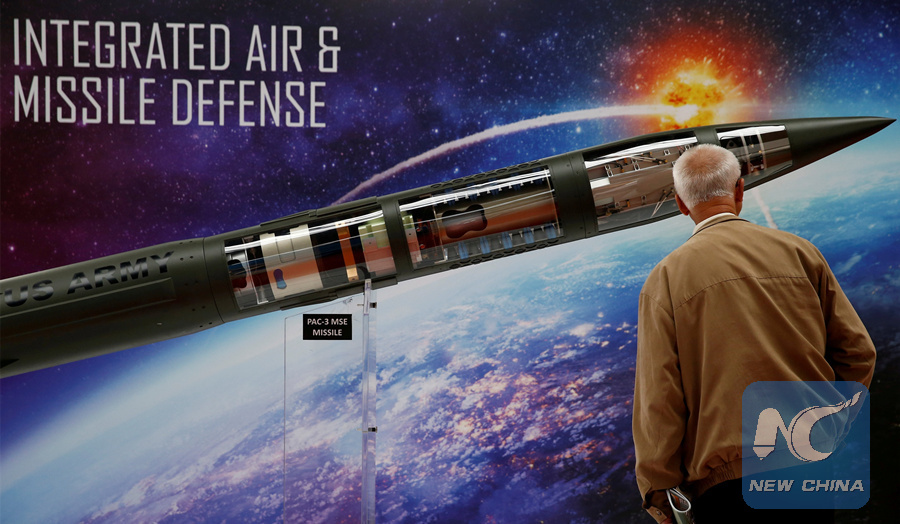 A man looks at a Patriot Advanced Capability (PAC-3) Missile Segment Enhancement (MSE) model by Lockheed Martin at an international military fair in Kielce, Poland September 7, 2017. (REUTERS PHOTO)