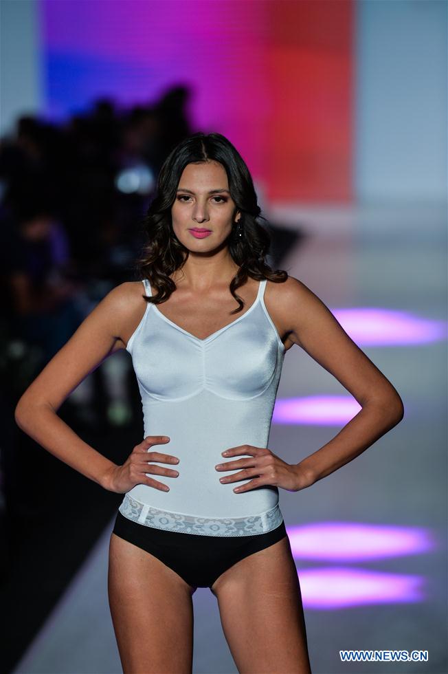 A model presents a creation of Fajas M&D during the Intermoda 2019 Fashion Show in Guadalajara, Mexico, on Jan. 17, 2019. (Xinhua/Xin Yuewei)