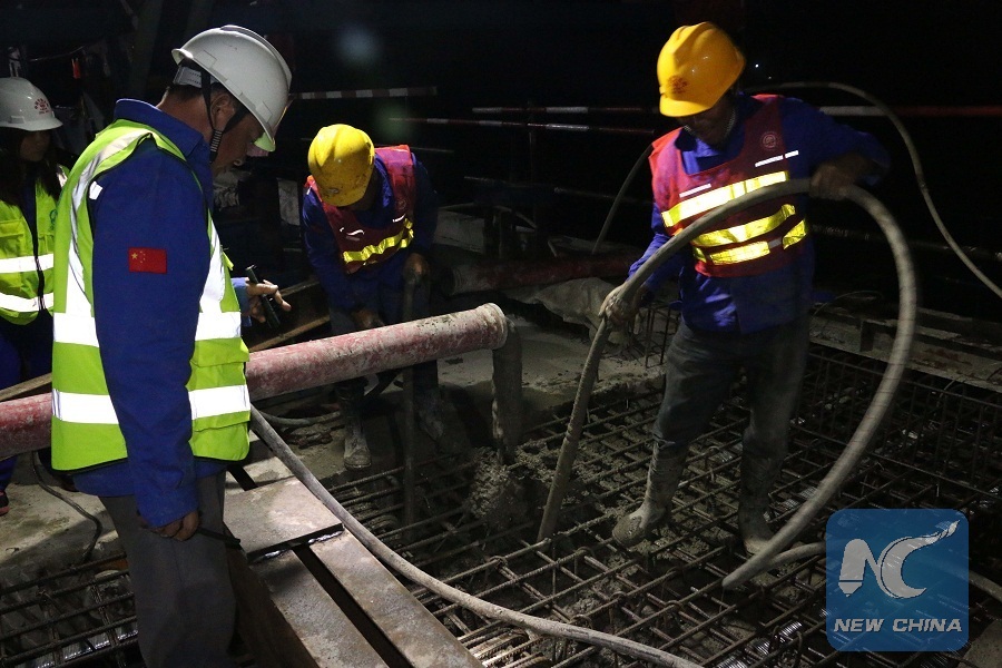 China Railway No. 5 Engineering Group (CREC-5) told Xinhua that at 03:20 local time on the same day, the company successfully completed the closure with cradle construction technique, at the under-construction Nathon Station Double-track Super Major Bridge, some 360 km north of Lao capital Vientiane.