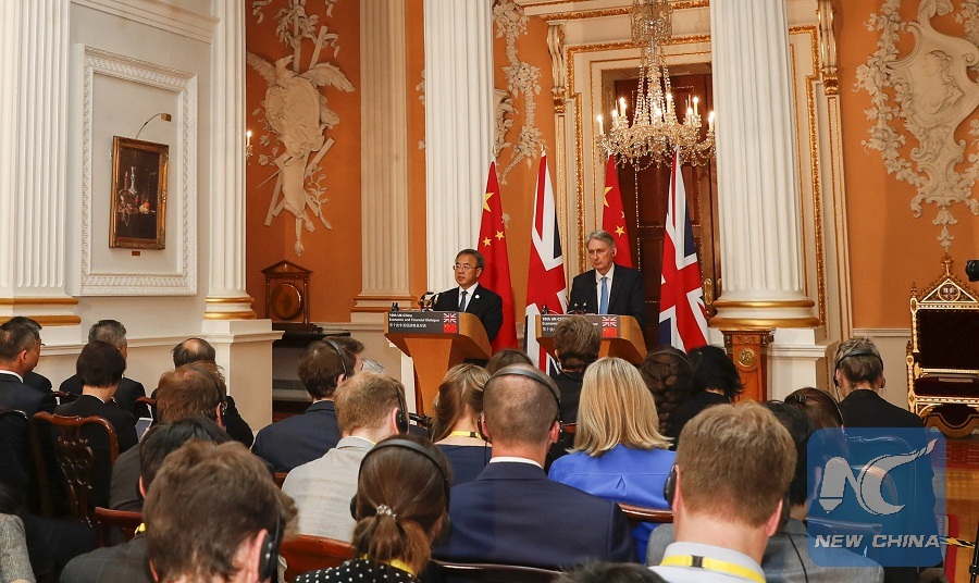 Chinese Vice Premier Hu Chunhua and British Chancellor of the Exchequer Philip Hammond co-chaired the 10th China-UK Economic and Financial Dialogue, with extensive discussions ranging from macroeconomics and global economic governance, trade and investment, big project partnership to financial reform and financial market development and cooperation in new areas.