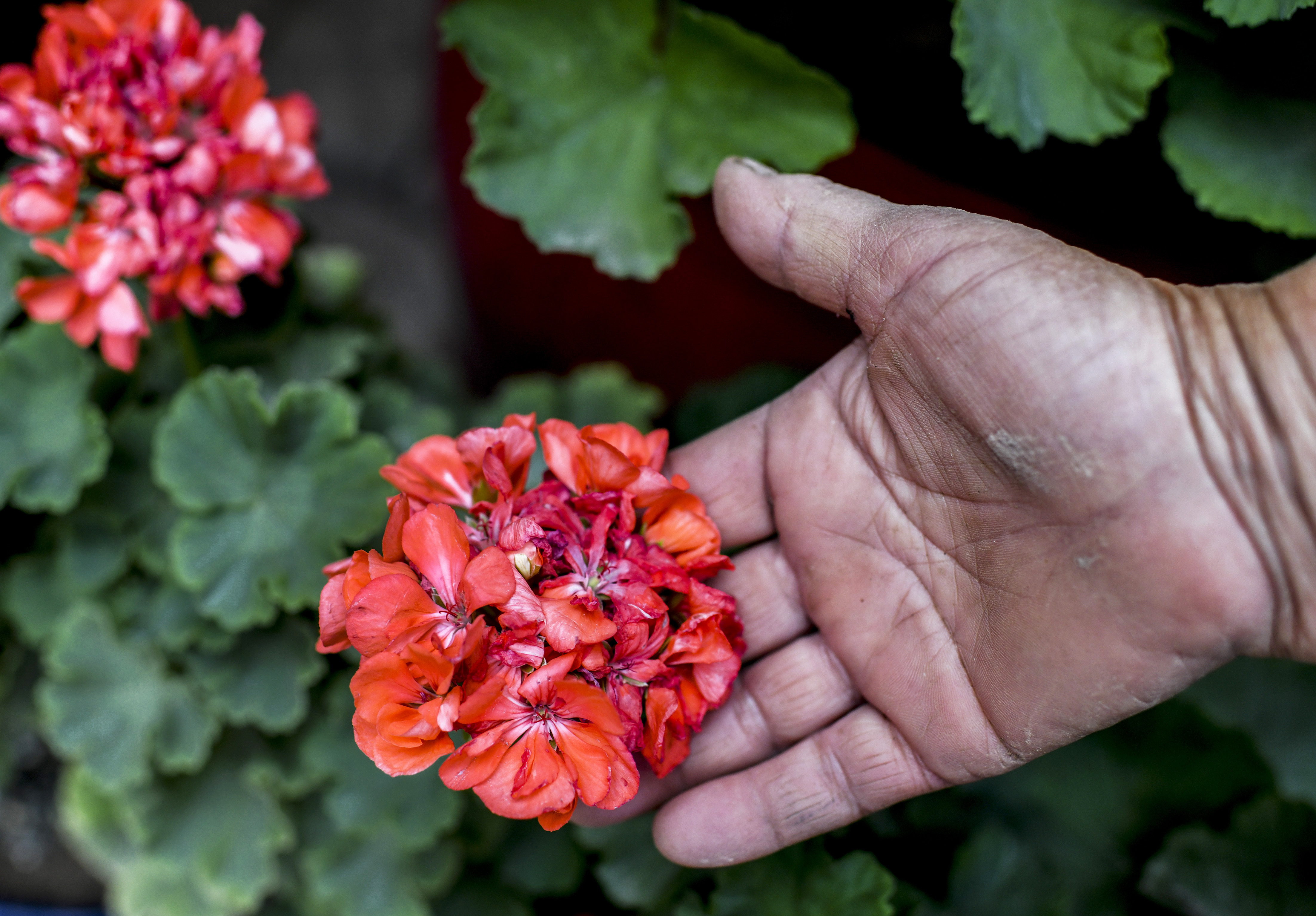 Salima Sultan checks the growth of flowers at home in Qianjin Village in Kashgar, northwest China's Xinjiang Uygur Autonomous Region, Aug. 18, 2019. (Xinhua/Wang Fei)
