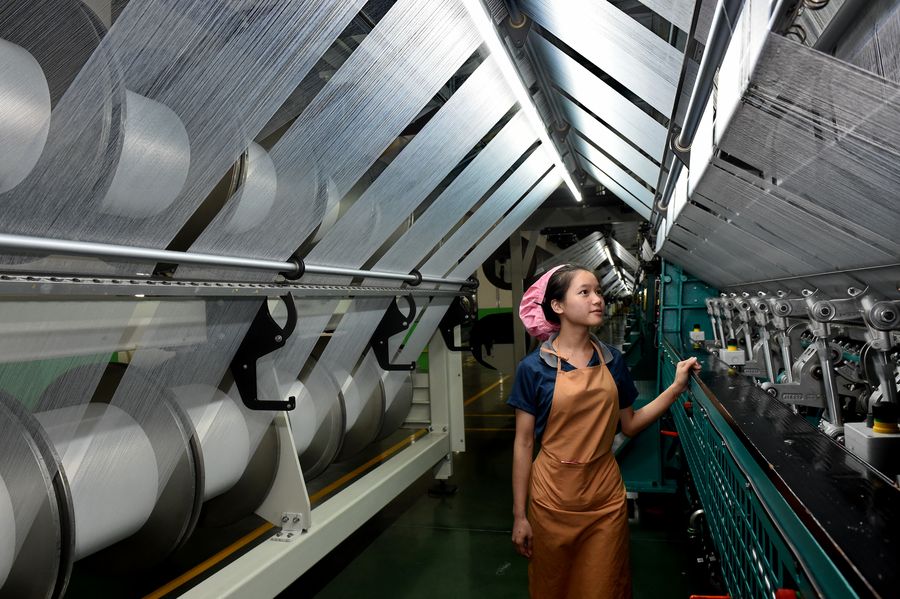 A worker checks the shoe-making materials at a workshop in Putian, southeast China's Fujian Province, Dec. 21, 2018. (Xinhua/Zhang Guojun)