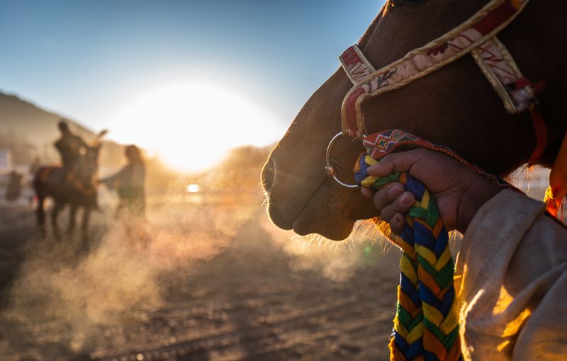 Competitors warm up before a horse race in Lhasa, capital city of southwest China's Tibet Autonomous Region, Feb. 7, 2019. (Xinhua/Purbu Zhaxi)