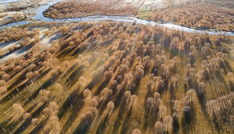 Aerial photo taken on Oct. 7, 2019 shows a view of the Lhasa River valley in Lhasa, capital city of southwest China's Tibet Autonomous Region. (Xinhua/Sun Fei)