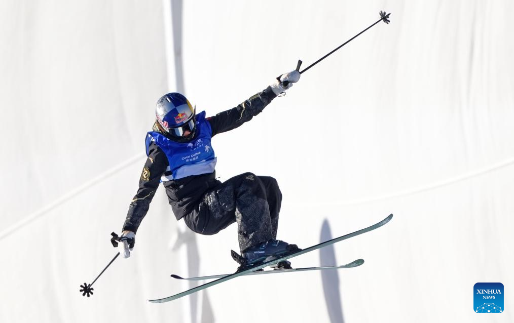 Izzy Lola Worthington of the United States competes during the women's freeski halfpipe qualification of FIS Freeski World Cup 2025 in Zhangjiakou, north China's Hebei Province, Dec. 11, 2025. (Xinhua/Wu Huiwo)