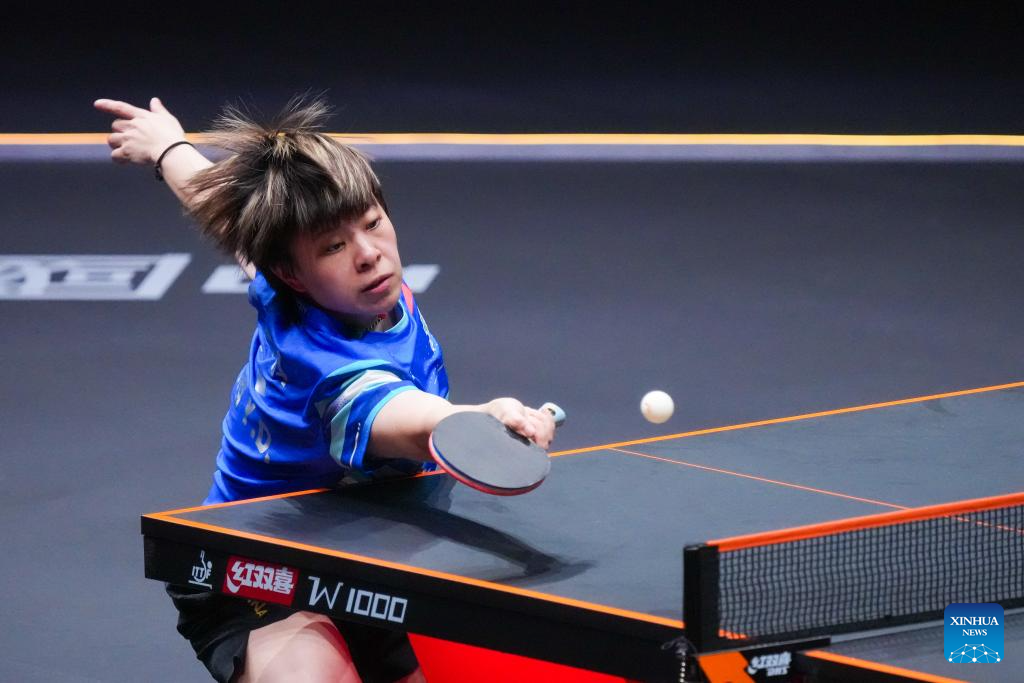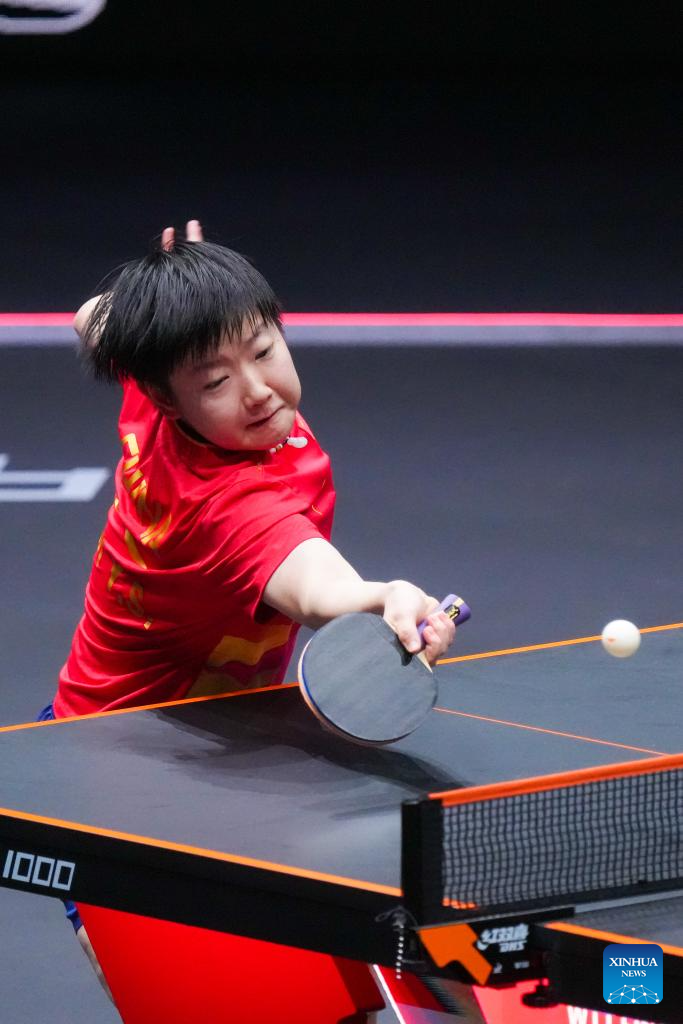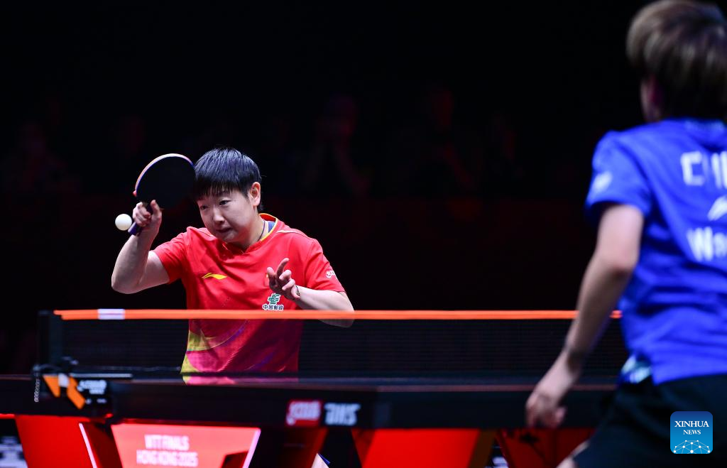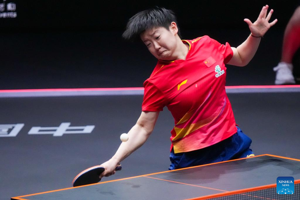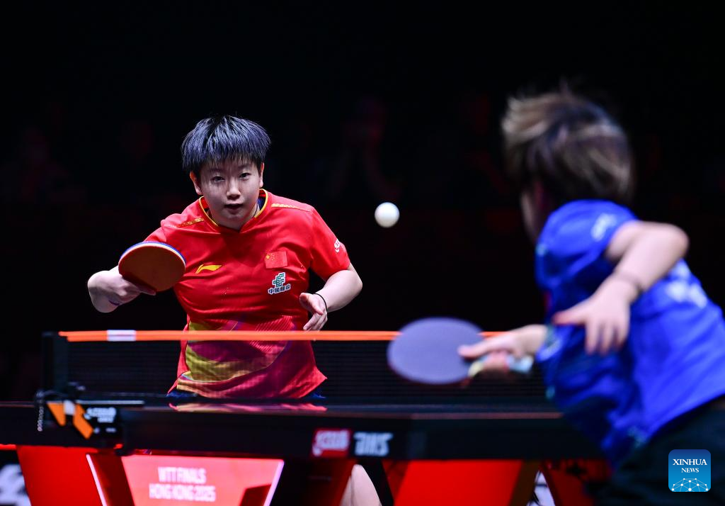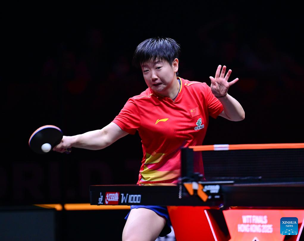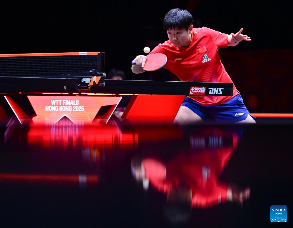 HONG KONG, Dec. 11 (Xinhua) -- Sun Yingsha and Lin Shidong sailed into the singles quarterfinals after claiming victories in Chinese derby at the World Table Tennis (WTT) Finals here on Thursday.