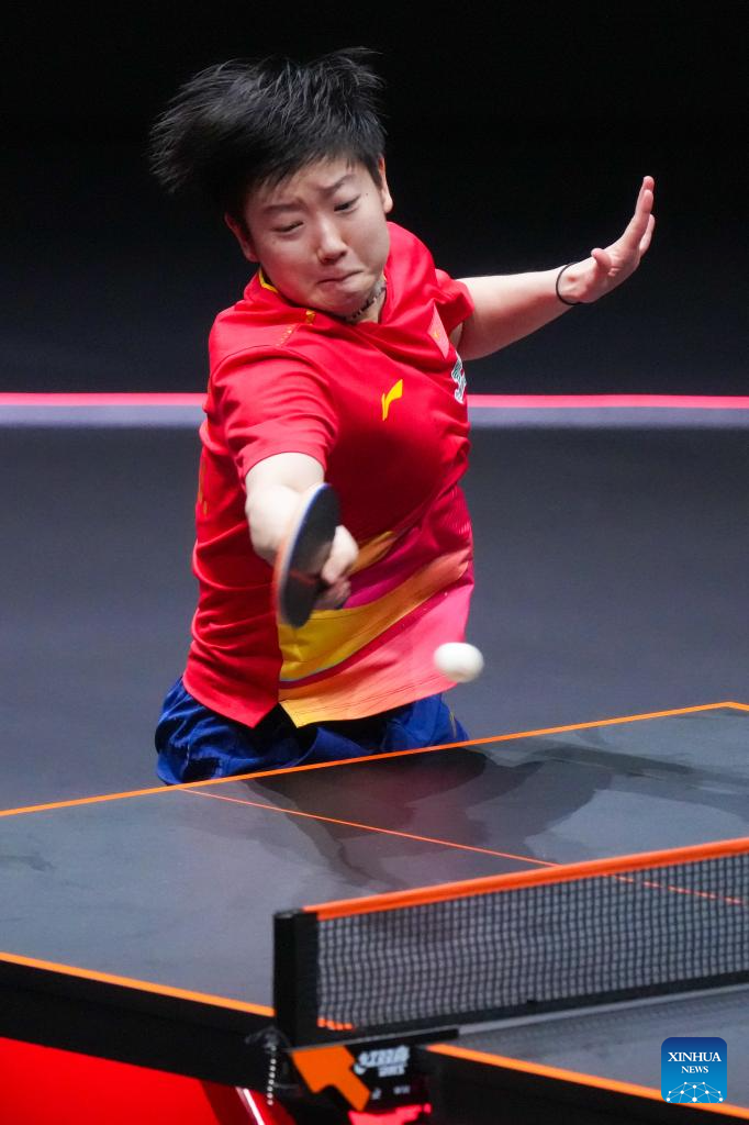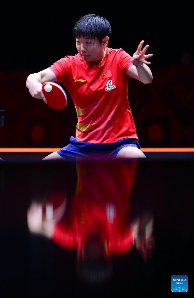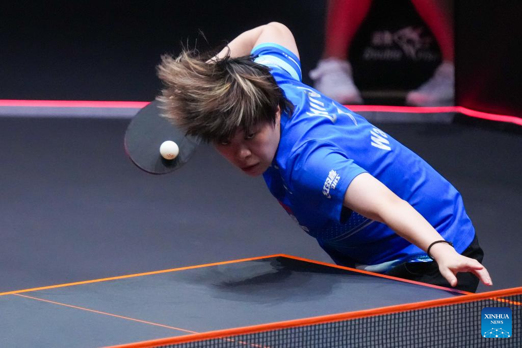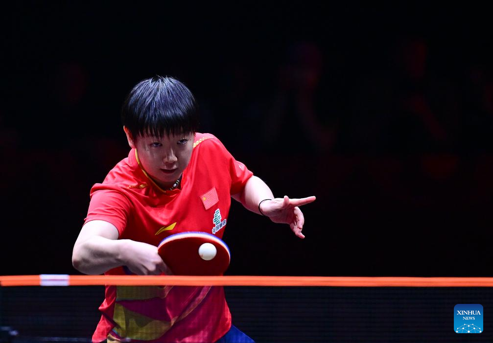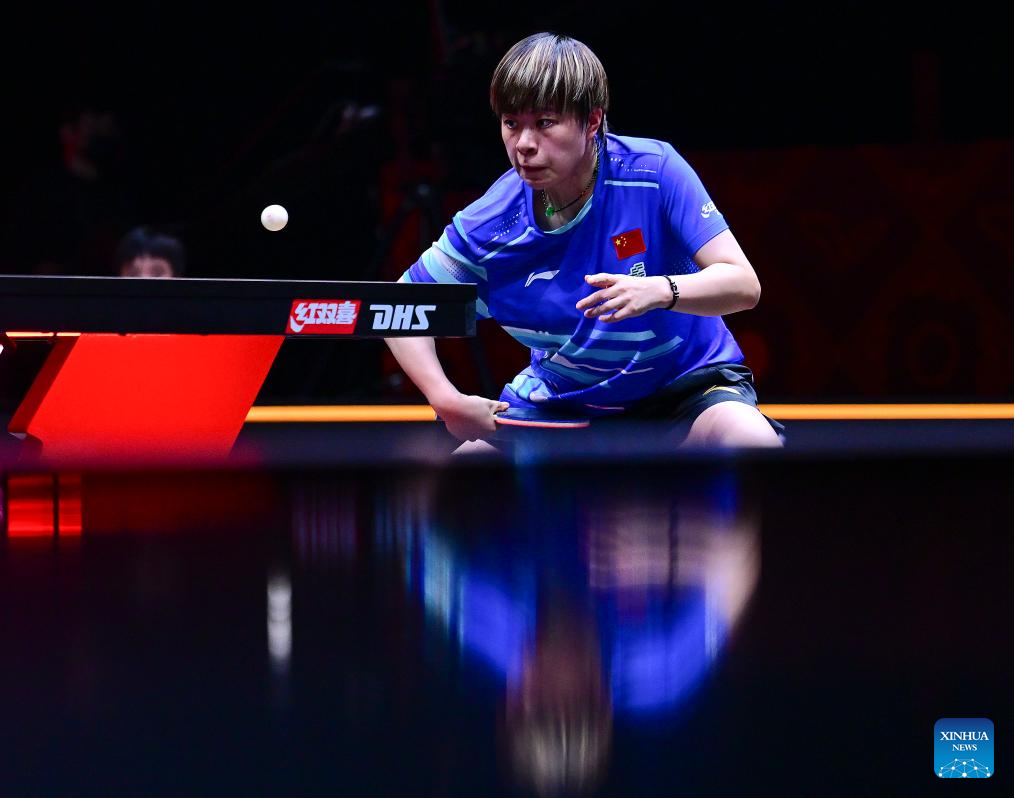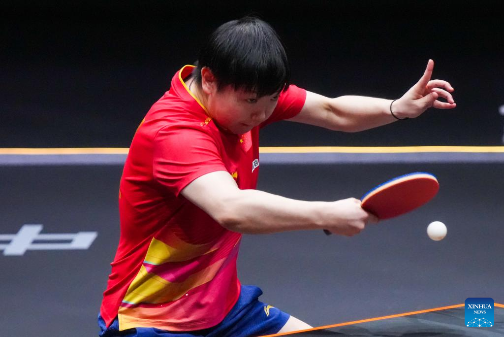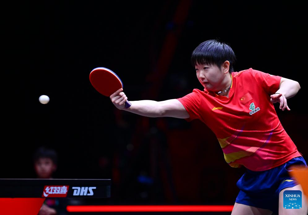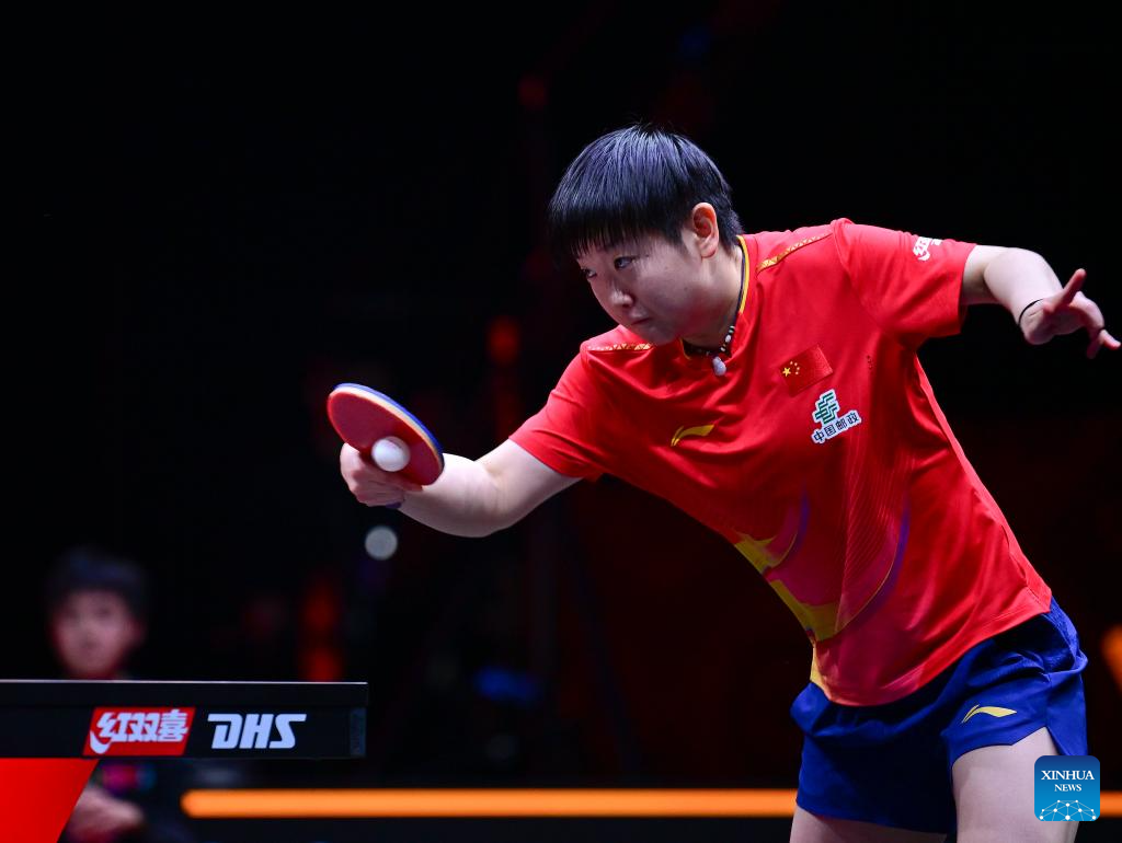 HONG KONG, Dec. 11 (Xinhua) -- Sun Yingsha and Lin Shidong sailed into the singles quarterfinals after claiming victories in Chinese derby at the World Table Tennis (WTT) Finals here on Thursday.