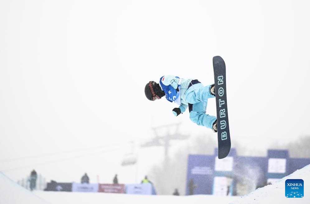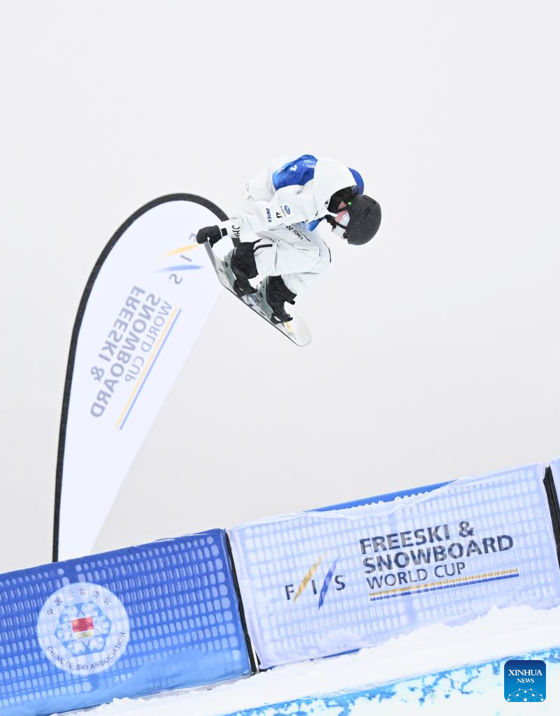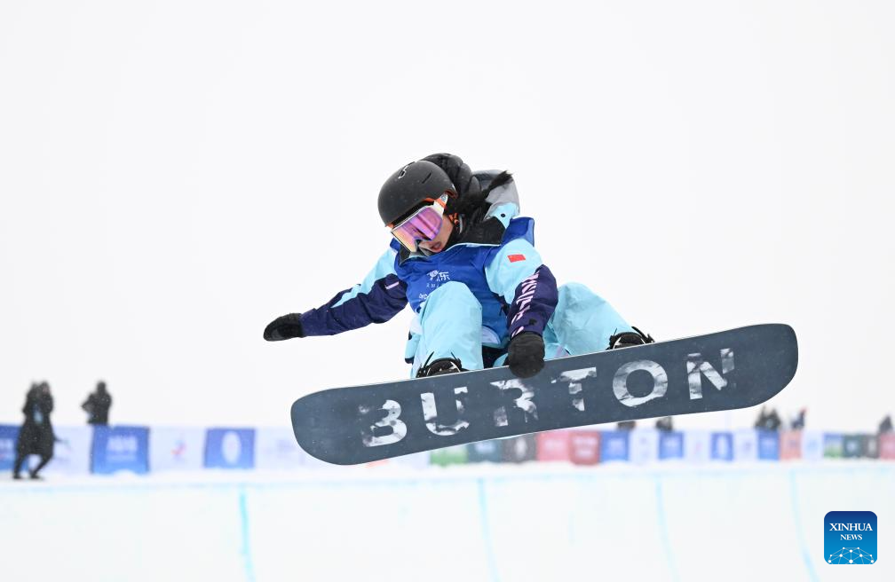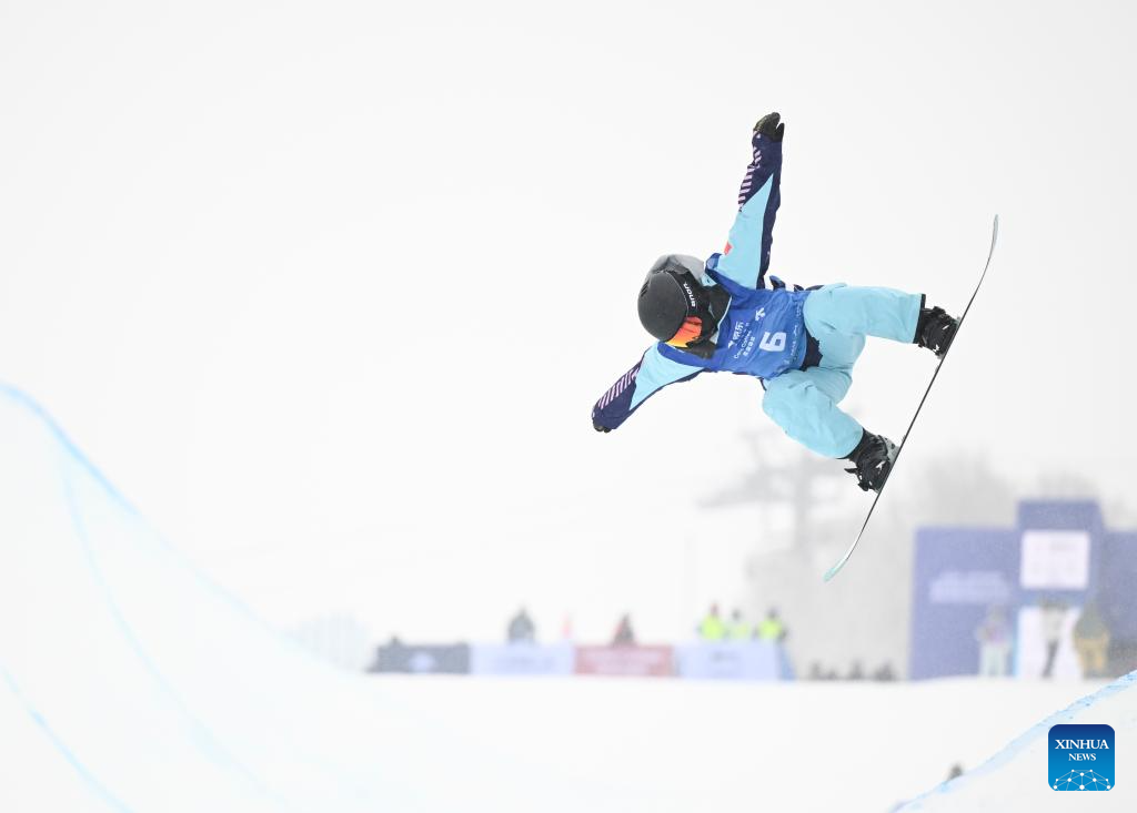 Wu Shaotong of China competes during the women's snowboard halfpipe final of FIS Snowboard World Cup 2025 in Zhangjiakou, north China's Hebei Province, Dec. 12, 2025. (Xinhua/Wu Huiwo)