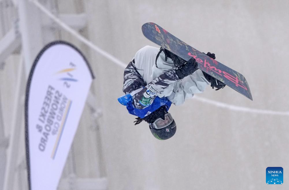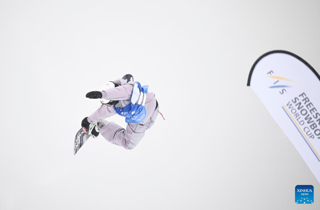 Liu Jiayu of China competes during the women's snowboard halfpipe final of FIS Snowboard World Cup 2025 in Zhangjiakou, north China's Hebei Province, Dec. 12, 2025. (Xinhua/Wu Huiwo)