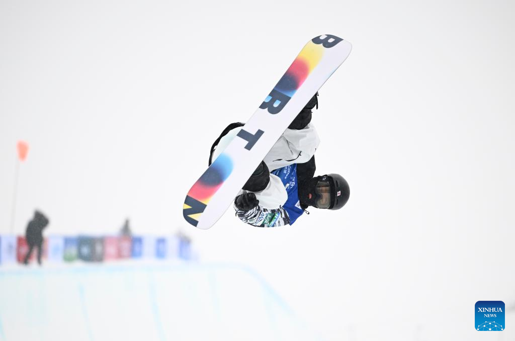 Hirano Ayumu of Japan competes during the men's snowboard halfpipe final of FIS Snowboard World Cup 2025 in Zhangjiakou, north China's Hebei Province, Dec. 12, 2025. (Xinhua/Wang Peng)