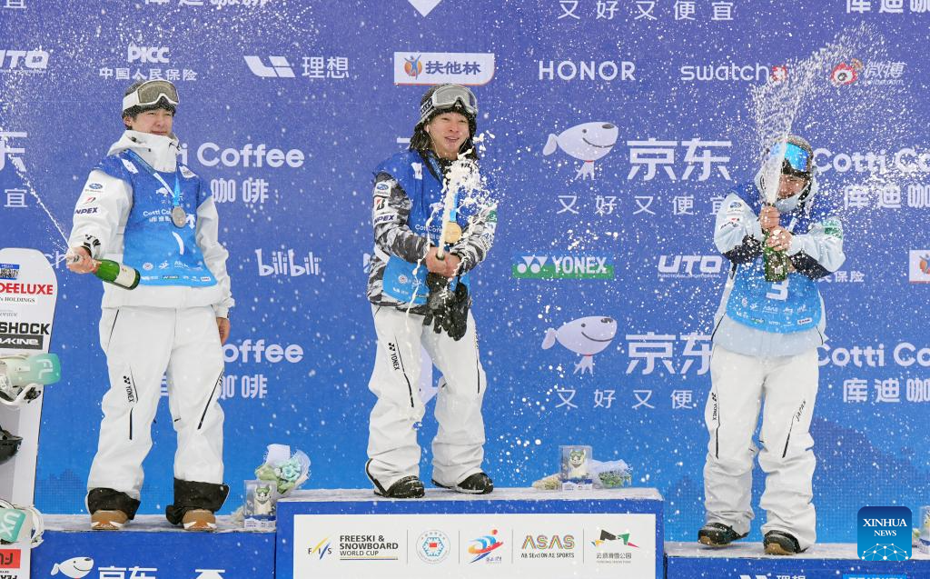 CHONGLI, China, Dec. 12 (Xinhua) -- Japan swept the men's halfpipe podium at the FIS Snowboard World Cup here on Friday, while China's veteran rider Cai Xuetong claimed bronze in the women's event.
