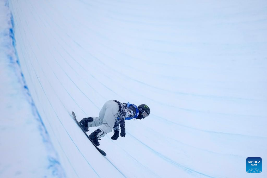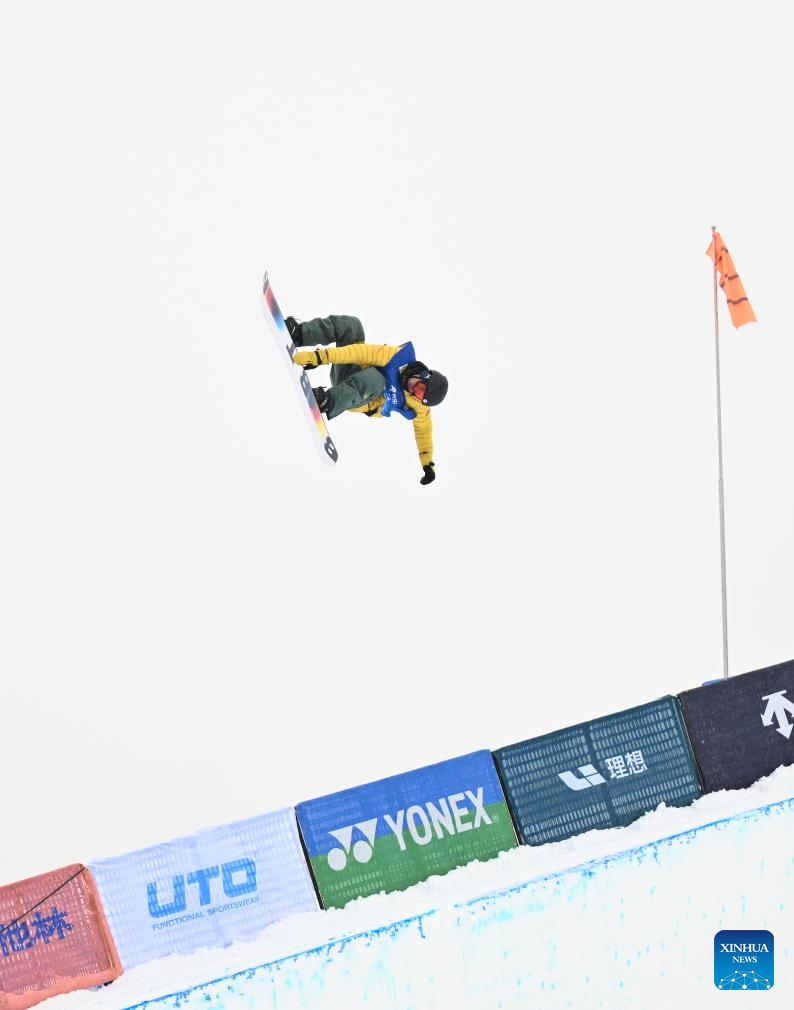 Totsuka Yuto of Japan competes during the men's snowboard halfpipe final of FIS Snowboard World Cup 2025 in Zhangjiakou, north China's Hebei Province, Dec. 12, 2025. (Xinhua/Wang Peng)