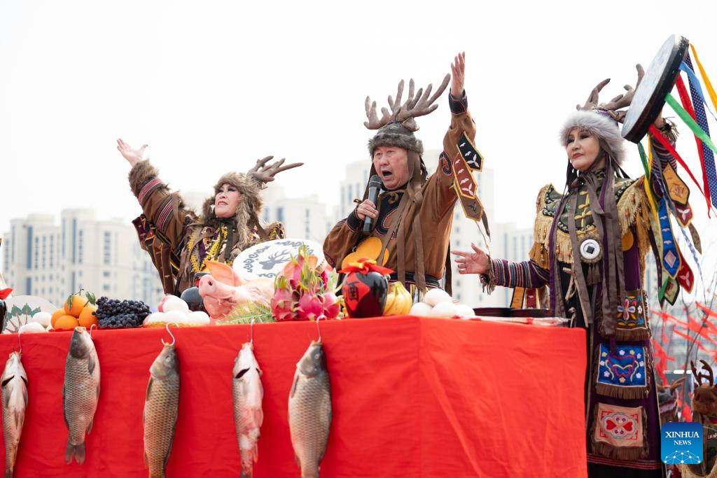 HARBIN, Dec. 12 (Xinhua) -- As morning mist rises over a river in northeast China's Heilongjiang Province, the raw, ancient chant of 65-year-old Wu Baochen pierces the quiet, bringing to life Yimakan, an oral storytelling art unique to the Hezhen -- also known as the Hezhe -- one of China's smallest ethnic minority groups.