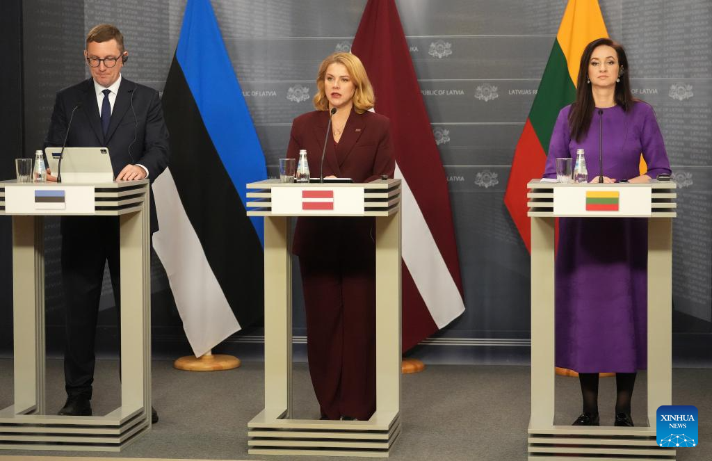 RIGA, Dec. 12 (Xinhua) -- Riga on Friday hosted a meeting of the prime ministers of Latvia, Lithuania and Estonia, focusing on regional security and joint infrastructure projects, marking the end of Latvia's 2025 chairmanship of the Baltic Council of Ministers.