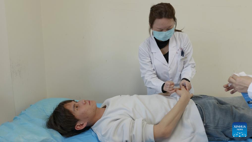LANZHOU, Jan. 17 (Xinhua) -- At the clinic of the Affiliated Hospital of Gansu University of Chinese Medicine, Sevira Putri Purnama Lumarso, a 22-year-old Indonesian, carefully locates acupuncture points and inserts needles for a patient.