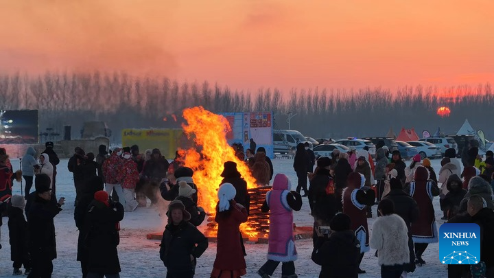 Zhu is among thousands of enthusiasts who have flocked to Hala village in the Meilisi Daur Ethnic District of Qiqihar, northeast China's Heilongjiang Province, for the 4th Northeast Camping Carnival. Running from Jan. 12 to 18, the event has this year seen the number of pitched tents exceed 1,000 for the first time, transforming the quiet, ice-sealed ethnic village into a vibrant hub for outdoor enthusiasts.