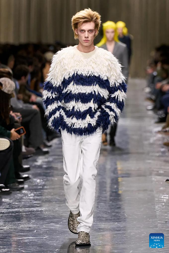 A model presents a creation from the menswear Fall/Winter 2026-2027 collections by Dior Homme during the Paris Fashion Week, in Paris, France, on Jan. 21, 2026. (MeetEurope/Handout via Xinhua)