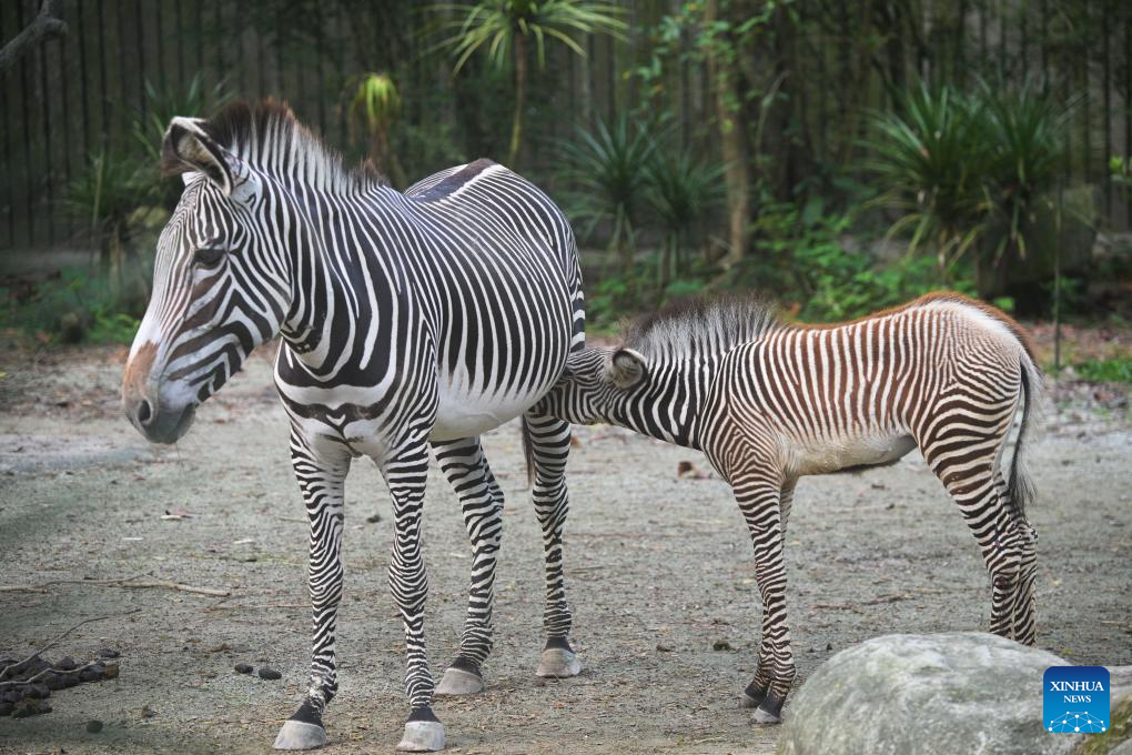 A female zebra foal is seen at the Singapore Zoo in Singapore, Jan. 22, 2026. The zebra foal was born here on Dec. 2, 2025. (Photo by Then Chih Wey/Xinhua)