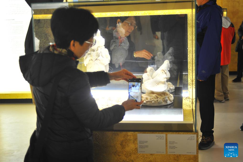 A visitor takes photos of an exhibit at the Bardo National Museum in Tunis, capital of Tunisia, Jan. 24, 2026. Featuring archaeological pieces, including sculptures, fragments, terracotta, from the site of Zama, the exhibition inaugurated at the Bardo National Museum on Jan. 21 and will last until July 21. (Photo by Adel Ezzine/Xinhua)