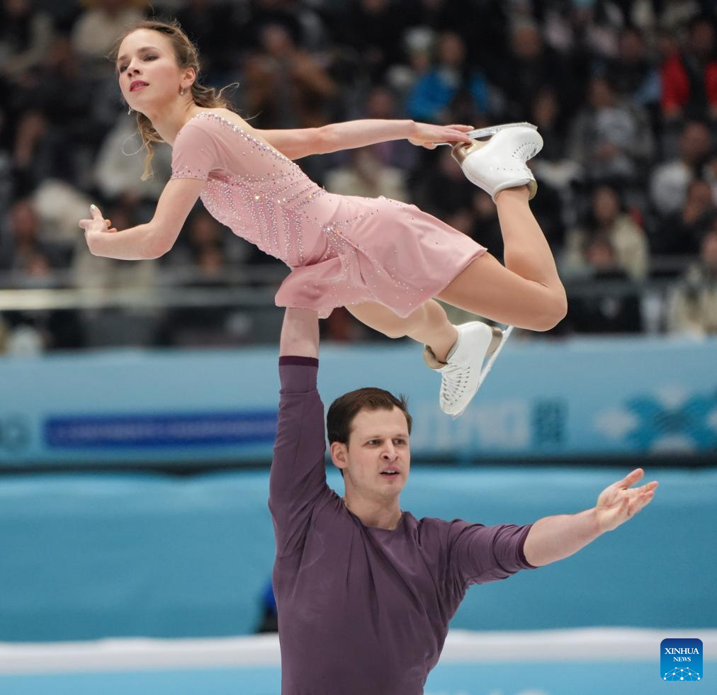 Alisa Efimova (top)/Misha Mitrofanov of the United States perform during the pairs free skating at the ISU Four Continents Figure Skating Championships in Beijing, China, Jan. 24, 2026. (Xinhua/Xie Han)