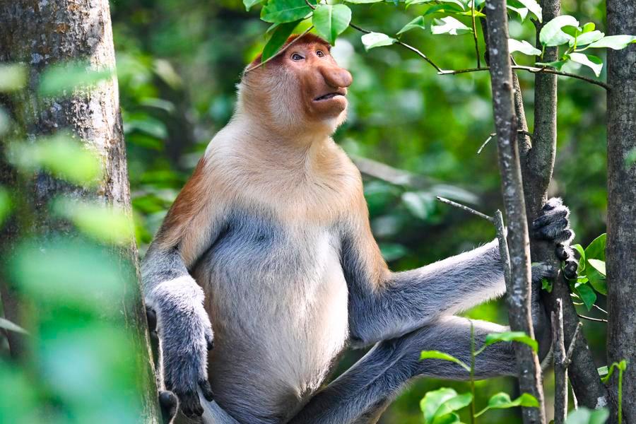 Photo taken on Jan. 20, 2026 shows a proboscis monkey (Nasalis larvatus) in Sandakan, Malaysia. (Xinhua/Cheng Yiheng)