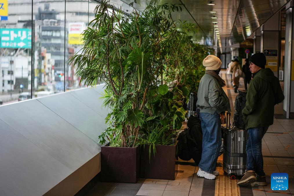 Tourists wait at a transportation hub near Shinjuku Station in Tokyo, Japan, Jan. 20, 2026. The number of visitors from the Chinese mainland to Japan plunged 45.3 percent from a year earlier in December 2025, official data showed.